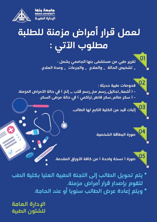 الاداره المسئوله عن صرف العلاج للأمراض المزمنة وغير المزمنة (الحادة) لطلاب جامعة بنها.